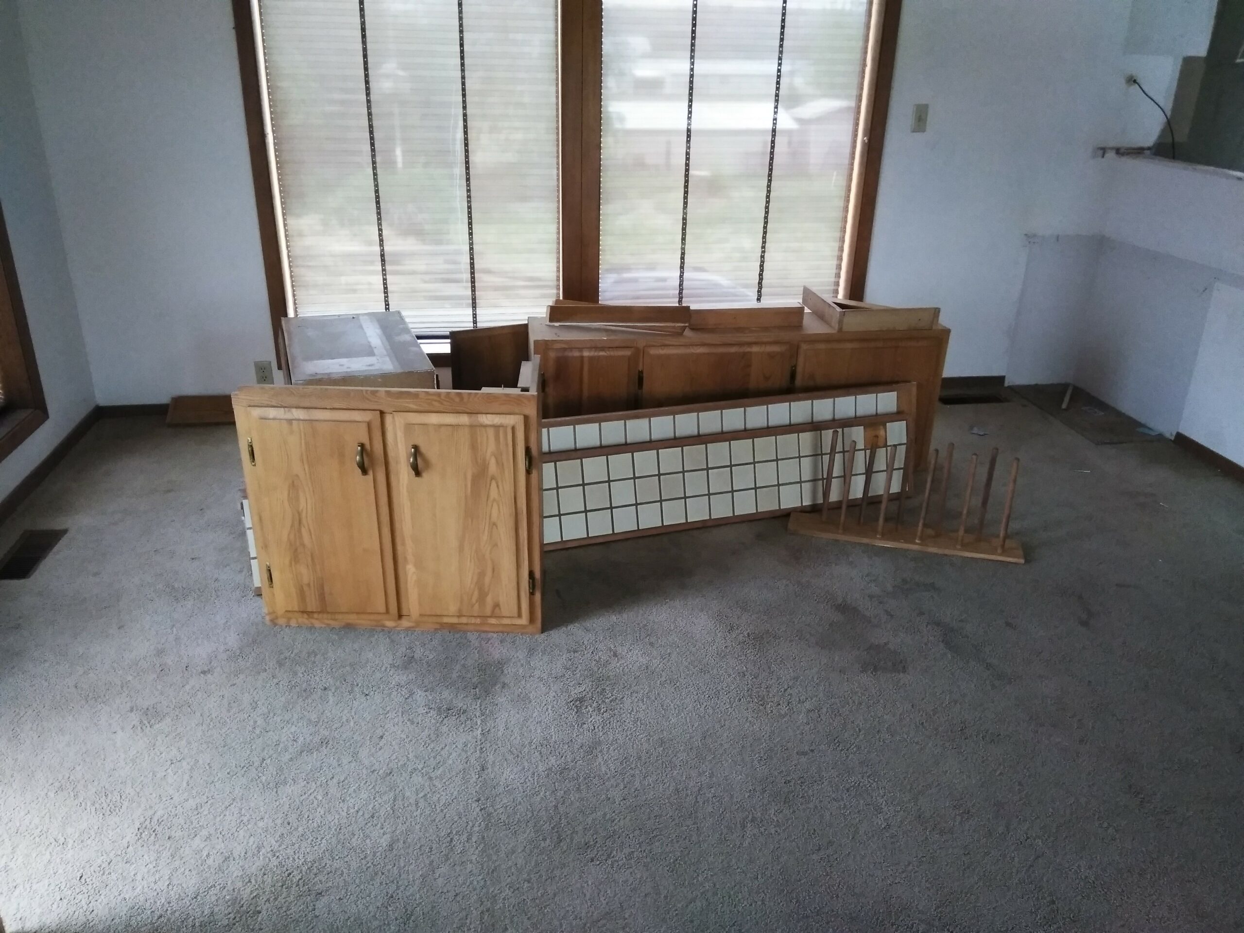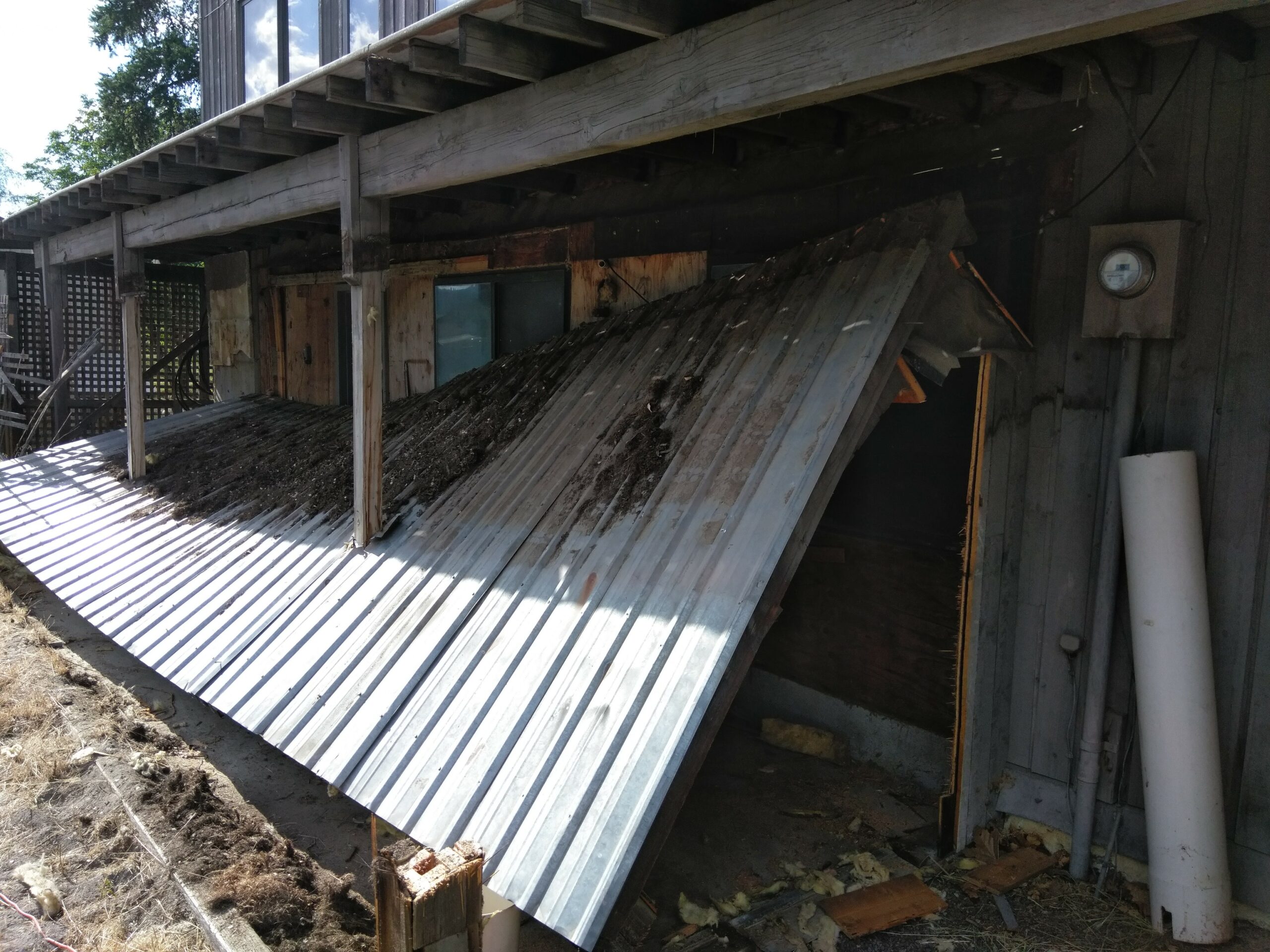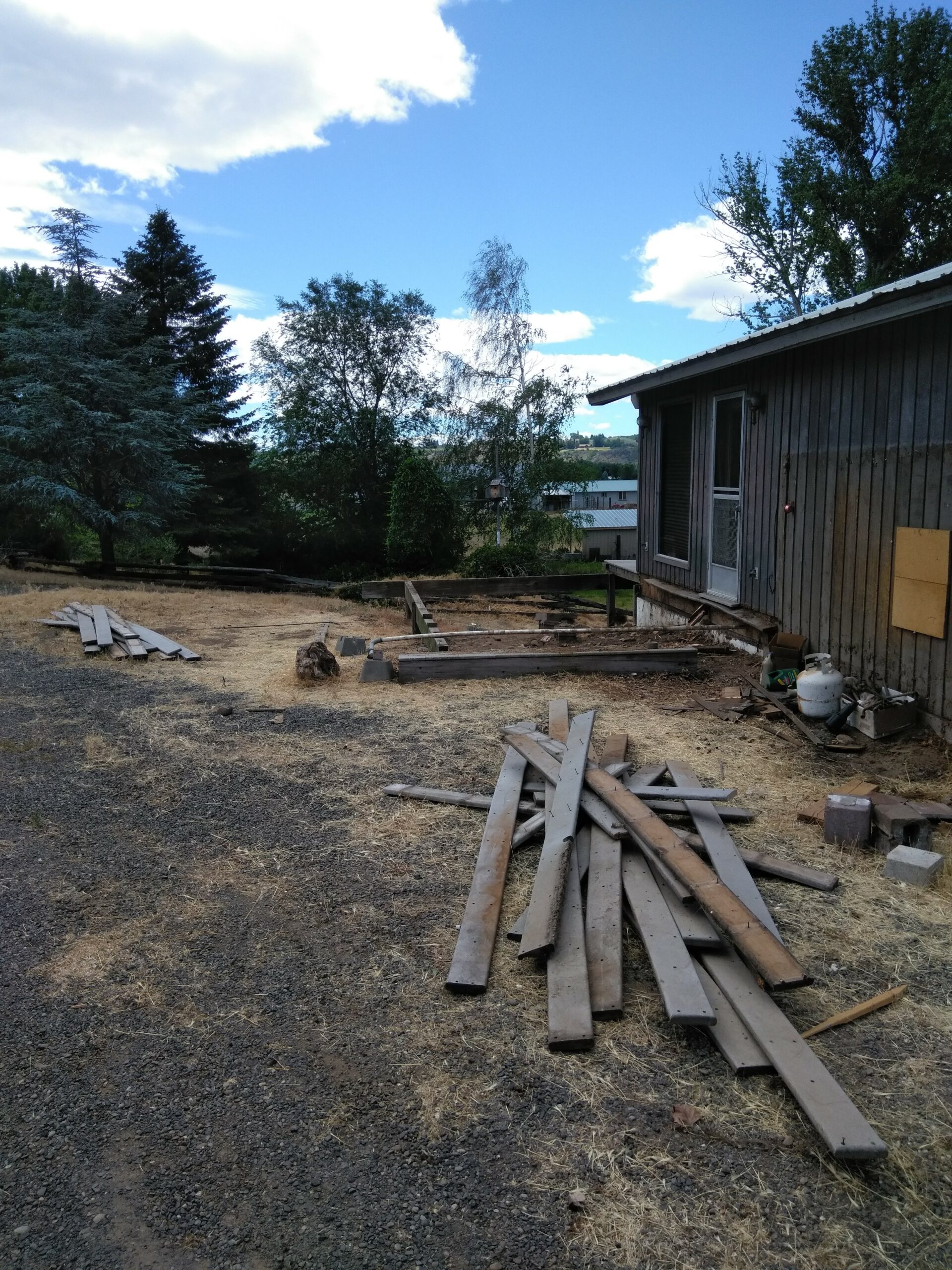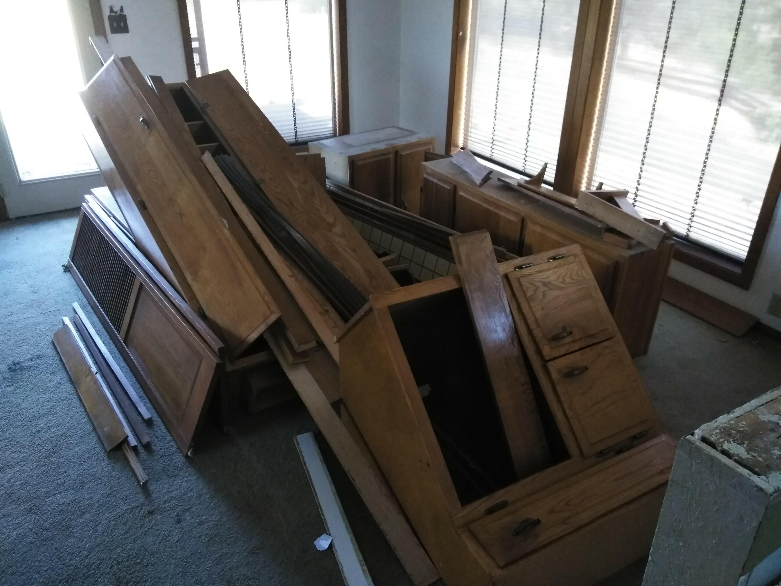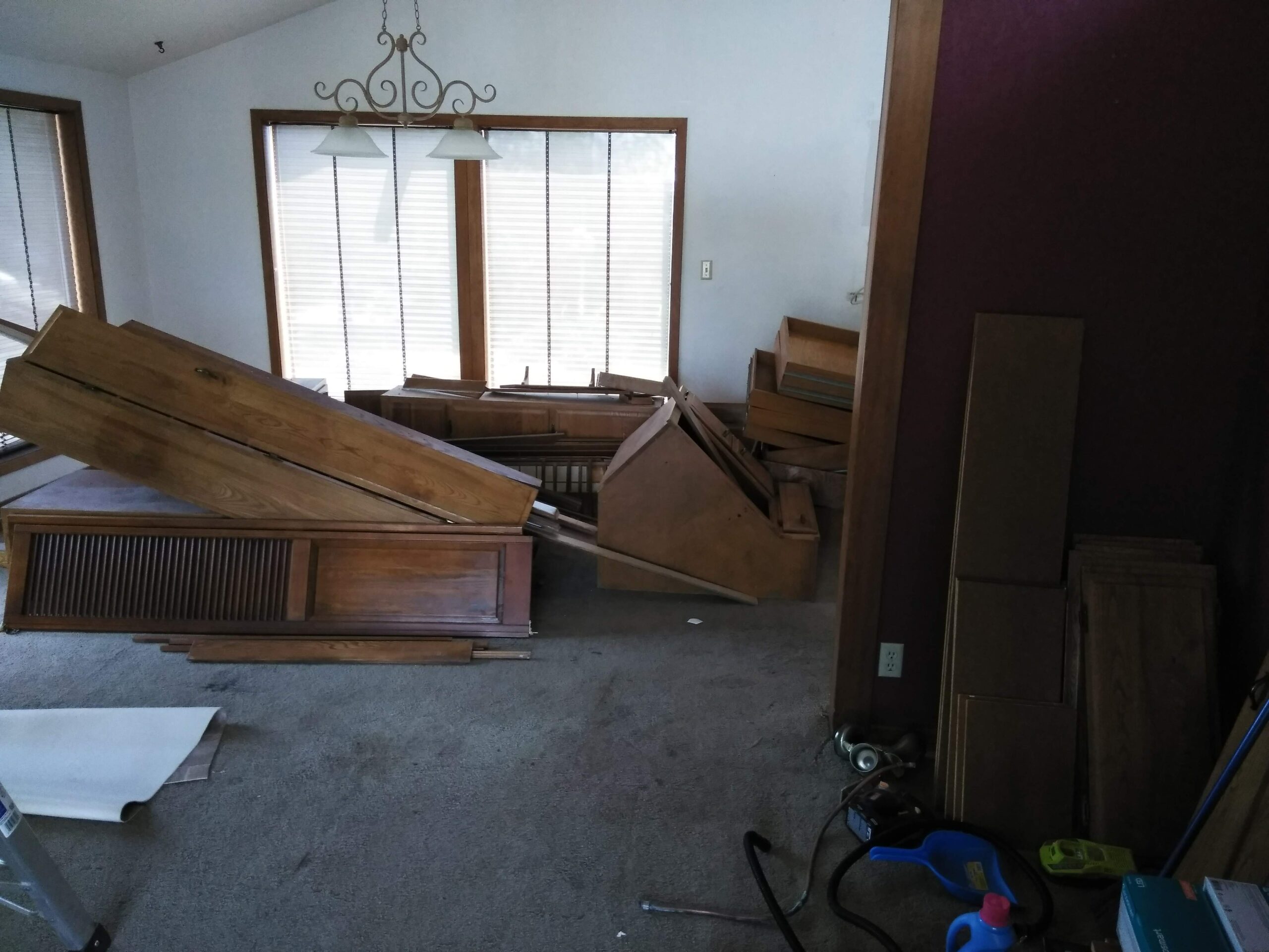 Pictures of the house on the real estate agent’s website were lovely; well, they were really nice, high quality, and most likely highly Photoshopped. But that’s OK, I’d planned on pretty much gutting the house, anyway, so the first order of business (inside) was to order up a 30 yard rolloff container and start gutting the house, including a greenhouse built as an extension to the house, a rickety deck, horribly stained and smelly carpet, linoleum, old built-in bathroom fixtures and a ton of junk that was left in the shop and in a lean-to beside it.