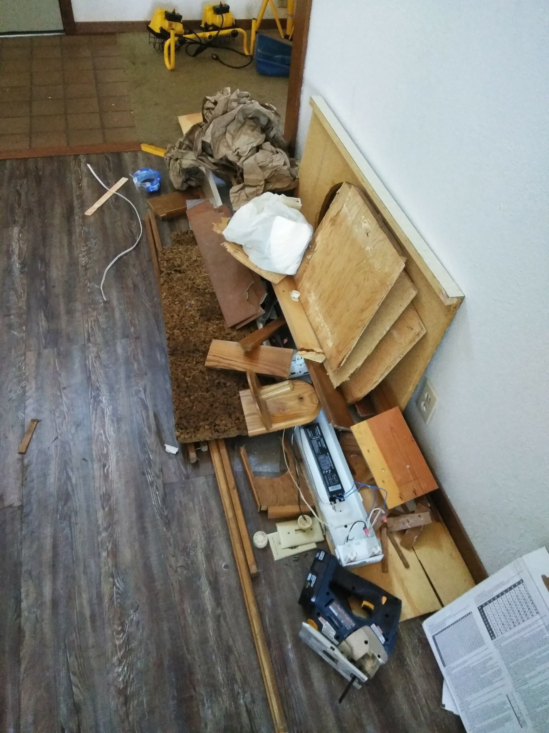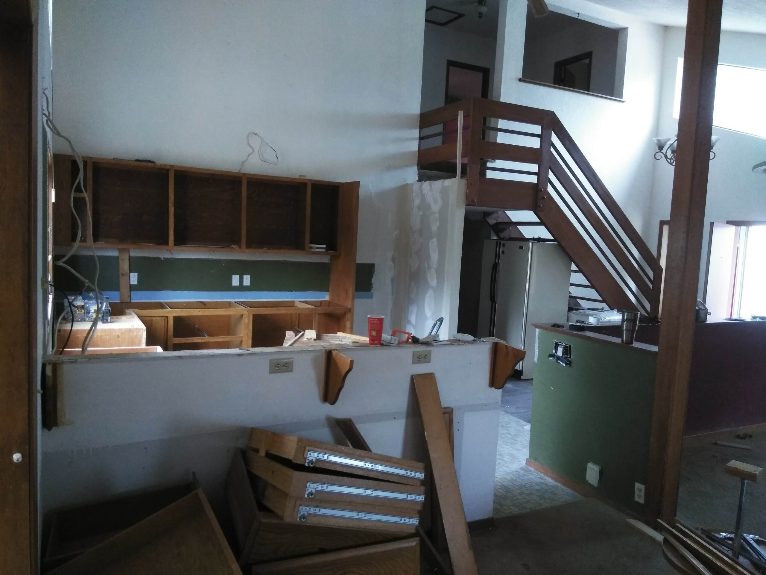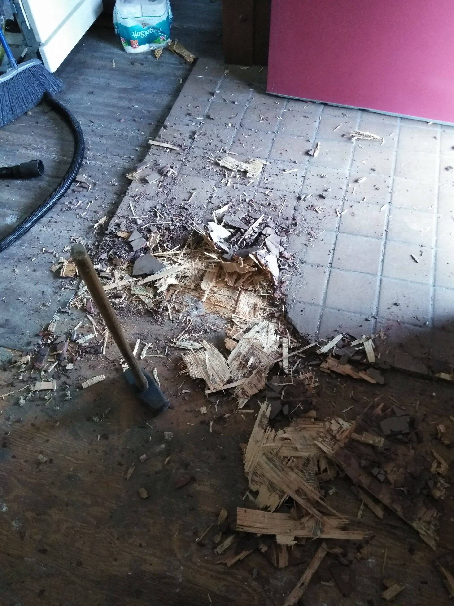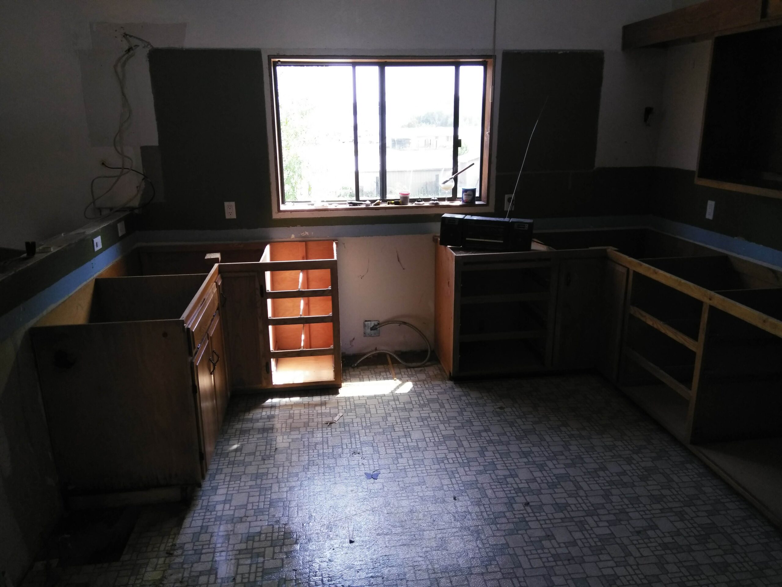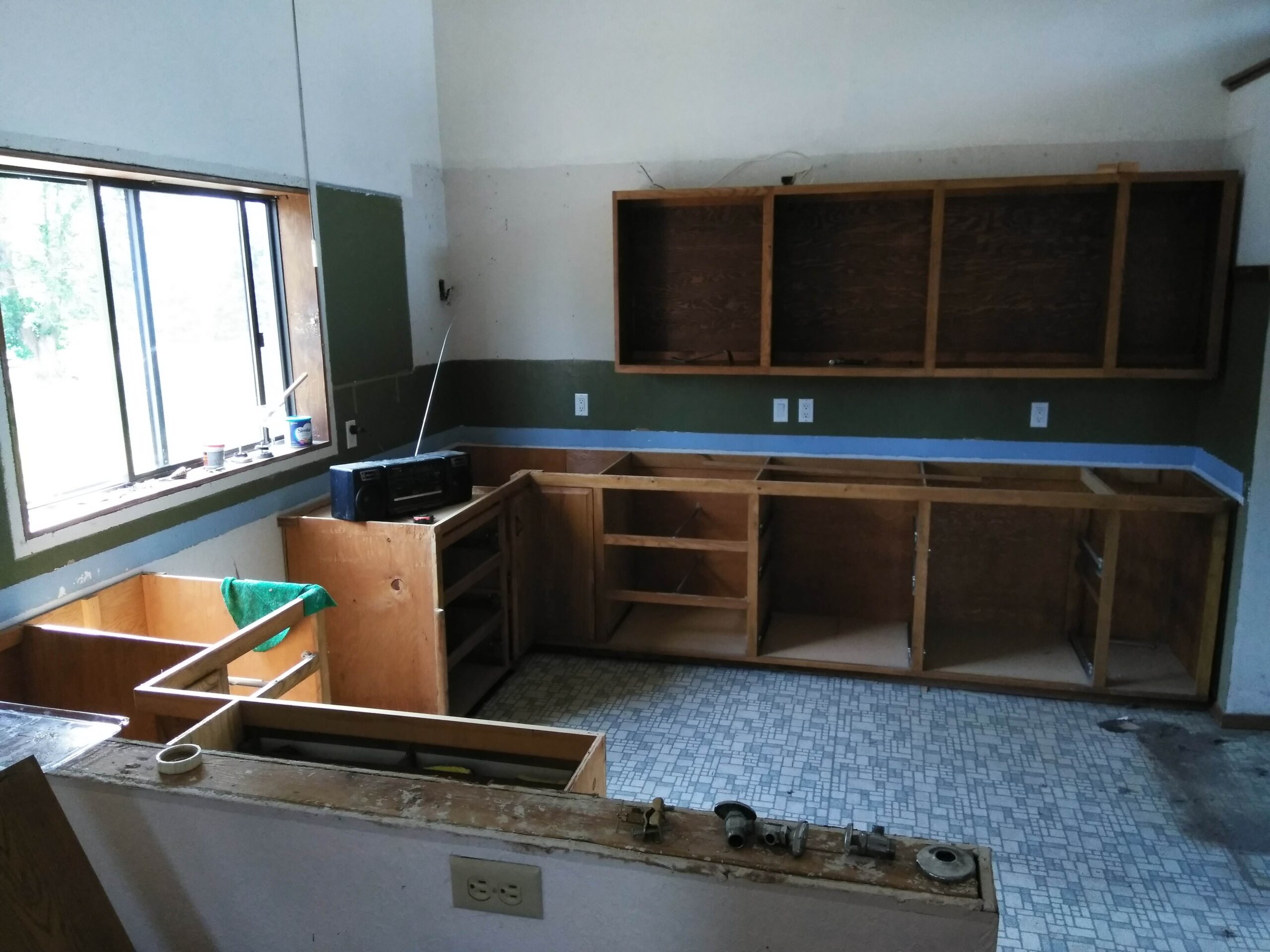 Pictures of the house on the real estate agent’s website were lovely; well, they were really nice, high quality, and most likely highly Photoshopped. But that’s OK, I’d planned on pretty much gutting the house, anyway, so the first order of business (inside) was to order up a 30 yard rolloff container and start gutting the house, including a greenhouse built as an extension to the house, a rickety deck, horribly stained and smelly carpet, linoleum, old built-in bathroom fixtures and a ton of junk that was left in the shop and in a lean-to beside it.