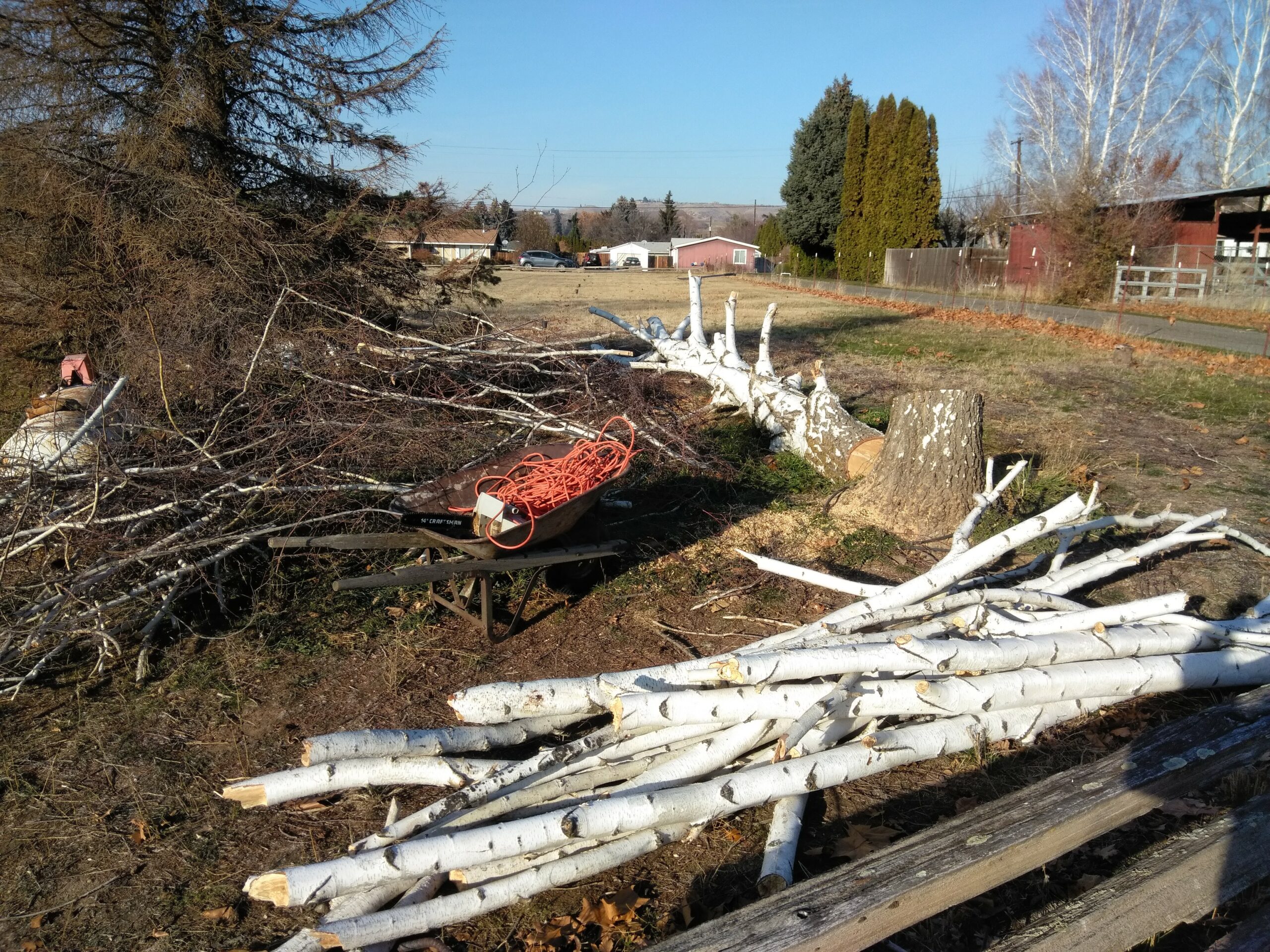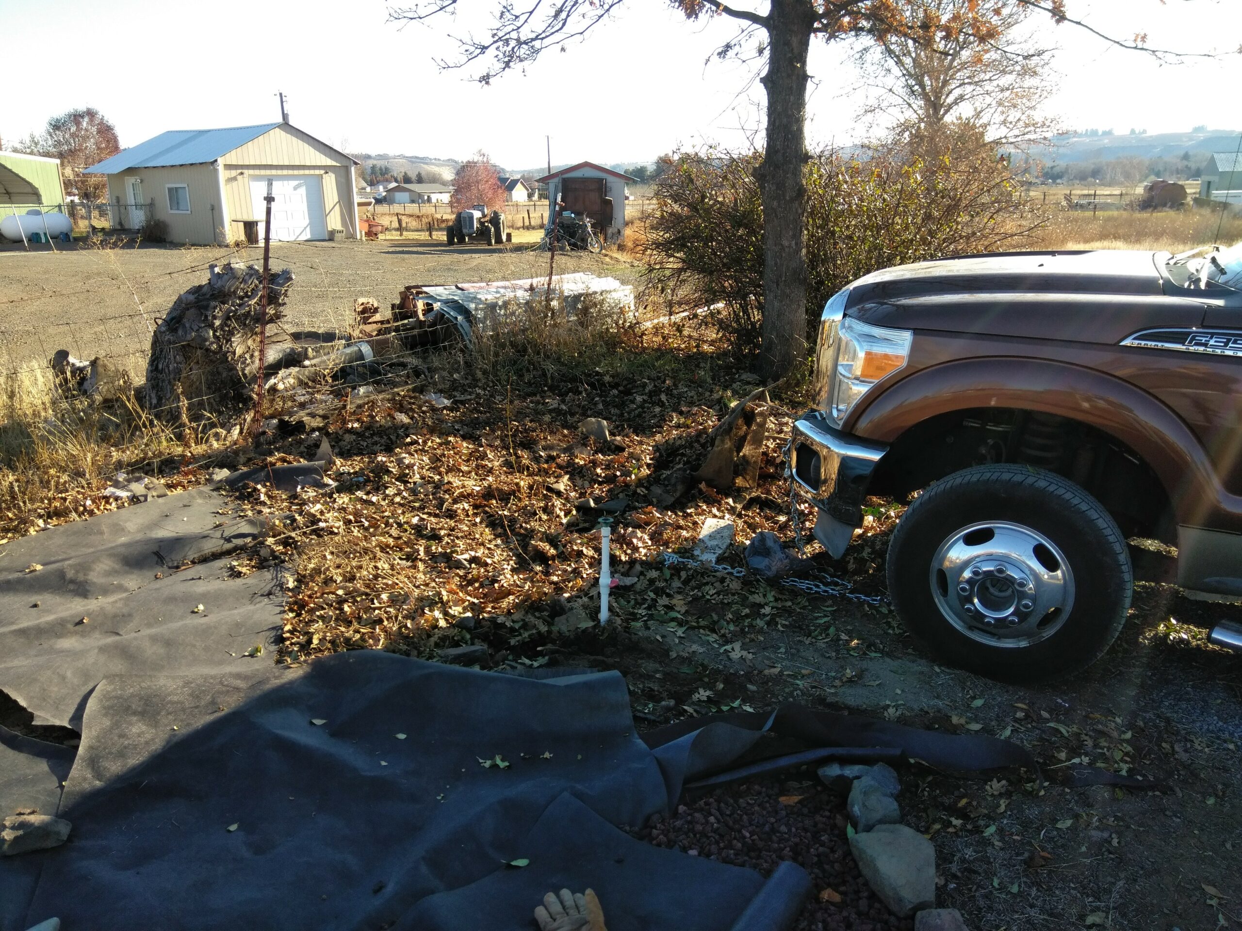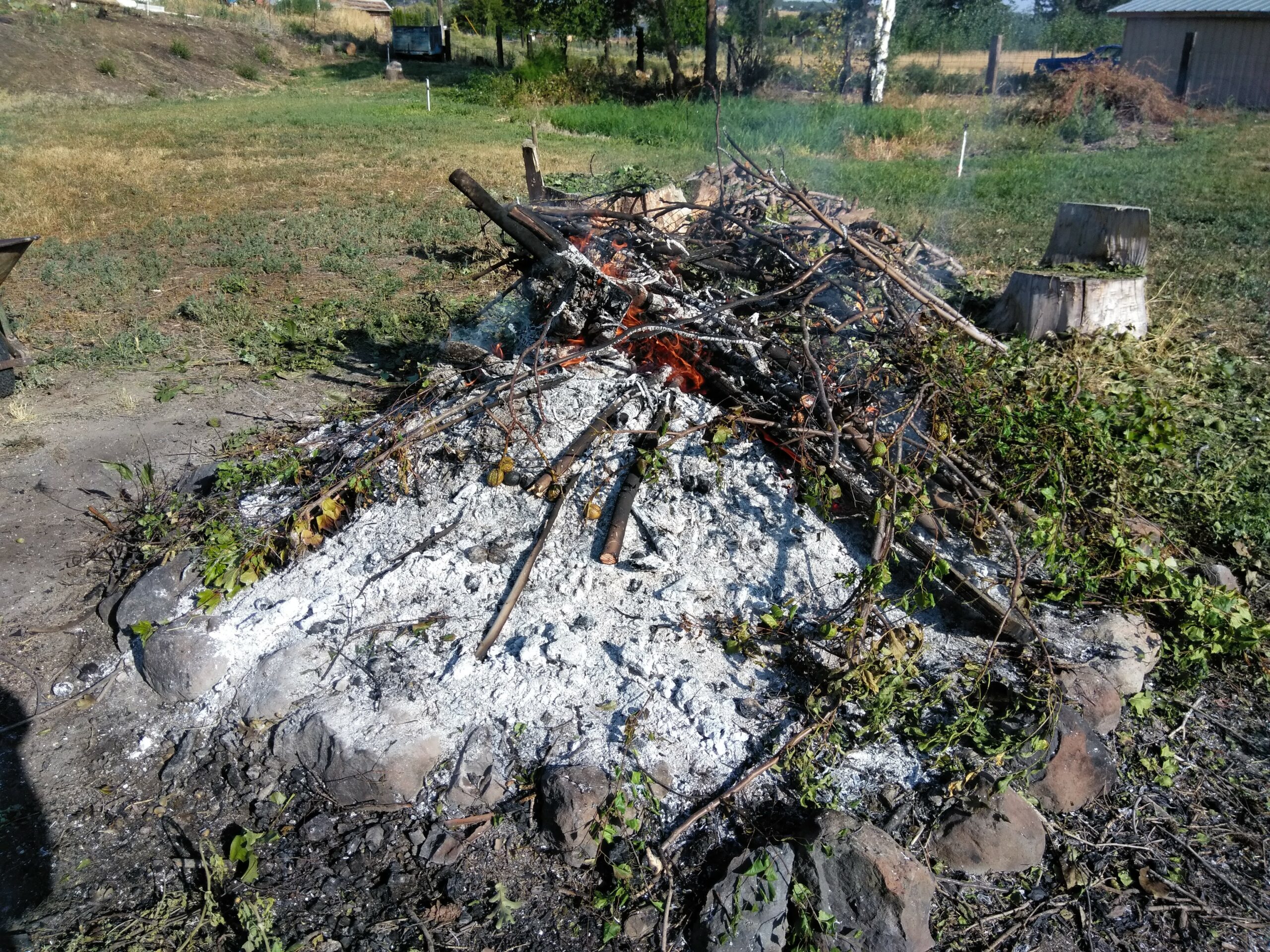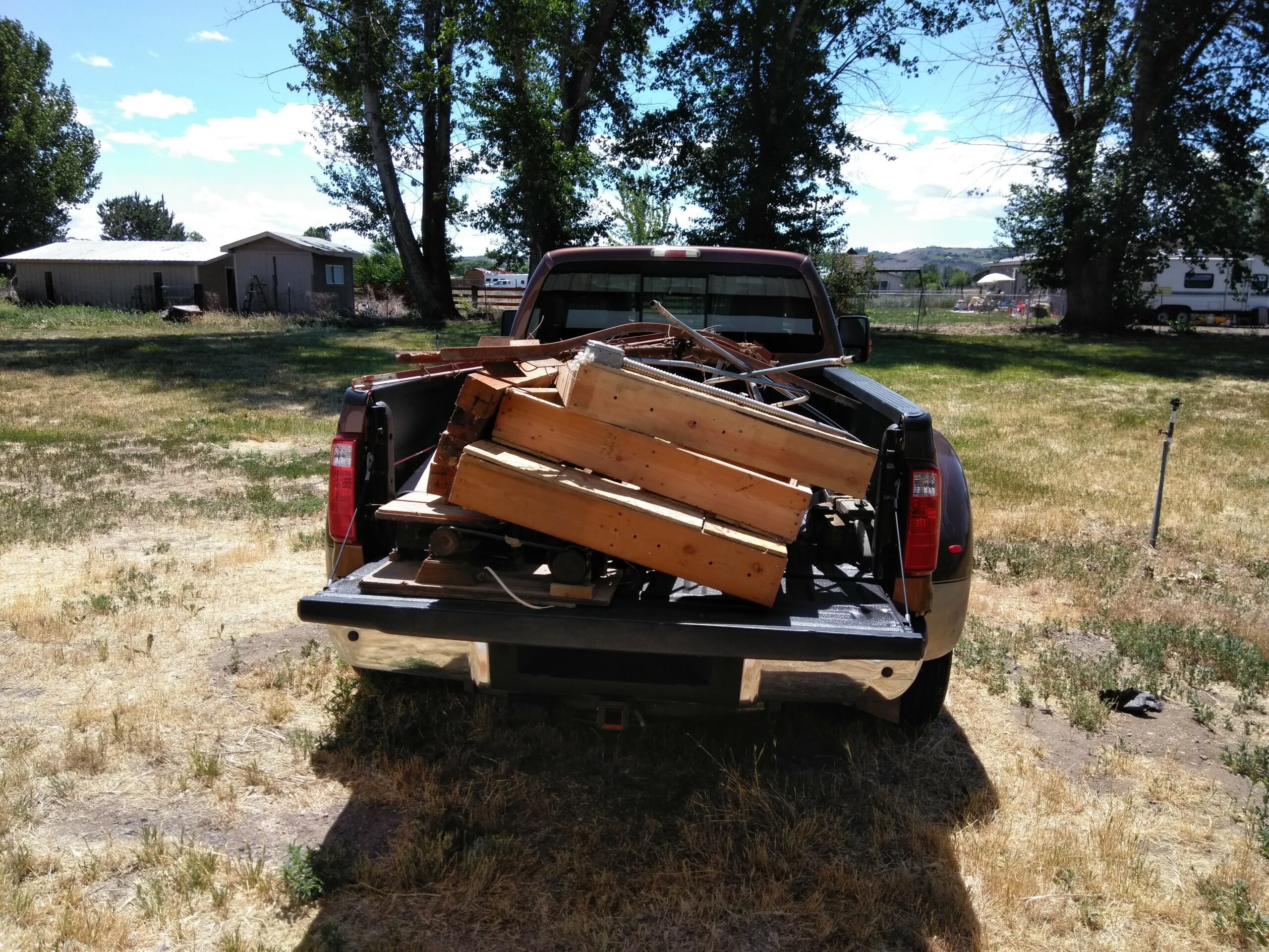 Then there’s the outside stuff – buy a riding lawnmower and then, when the weeds and grass were just too thick to cut, a gas-powered weed whacker with a steel blade for the heavy work. And then a chainsaw for a bunch of dead/dying trees. And of course my trusty machete, a talent I’d picked up hacking away the jungle in Peru and Panama. All this led to one of my favorite nocturnal activities – huge burn piles! Unfortunately, the Gleed Fire Department wasn’t as enthused about this activity as I was, so night-time bonfires got toned down a bit after a nice visit from several fire trucks.
